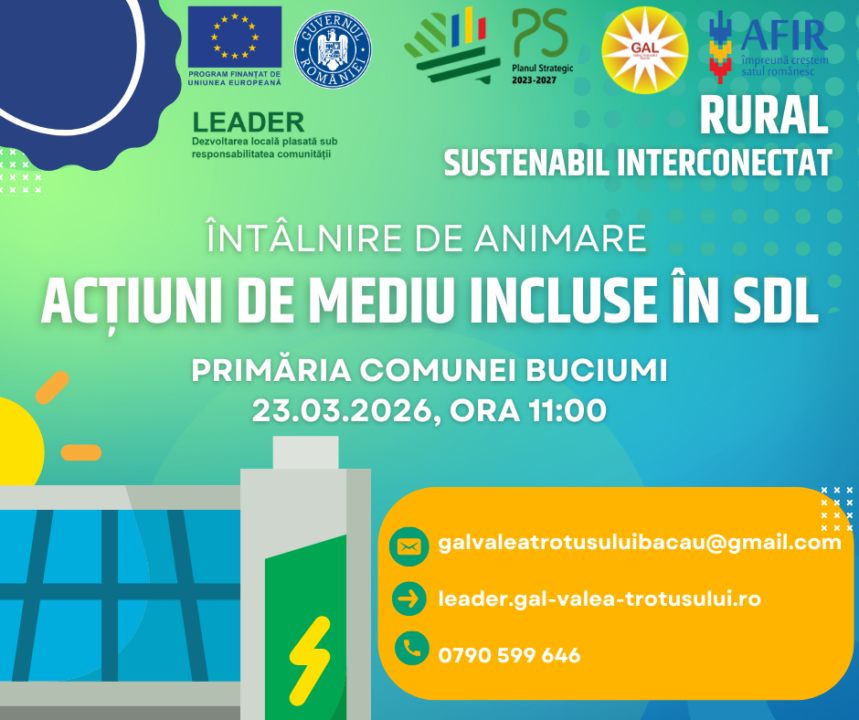 Întâlnire de animare la Primăria Buciumi în data de 23.03.2026 ora 11:00 – Acțiuni de mediu incluse în SDL